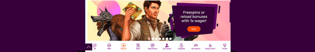 The site features some of the most famous slots like Book of Dead, Wolf Gold or Rise Of Olympus but they also offer fresh slot titles under “New” tab such as Street Fighter II by Netent. You can easily locate available jackpot machines in this section with 60 different options to choos. from including major names like Mega Moolah and Divine Fortune (although you won't find them here). Play'n Go i SoftBet Pragmatic Play power almost exclusively these games which include Lucky Leprechaun.